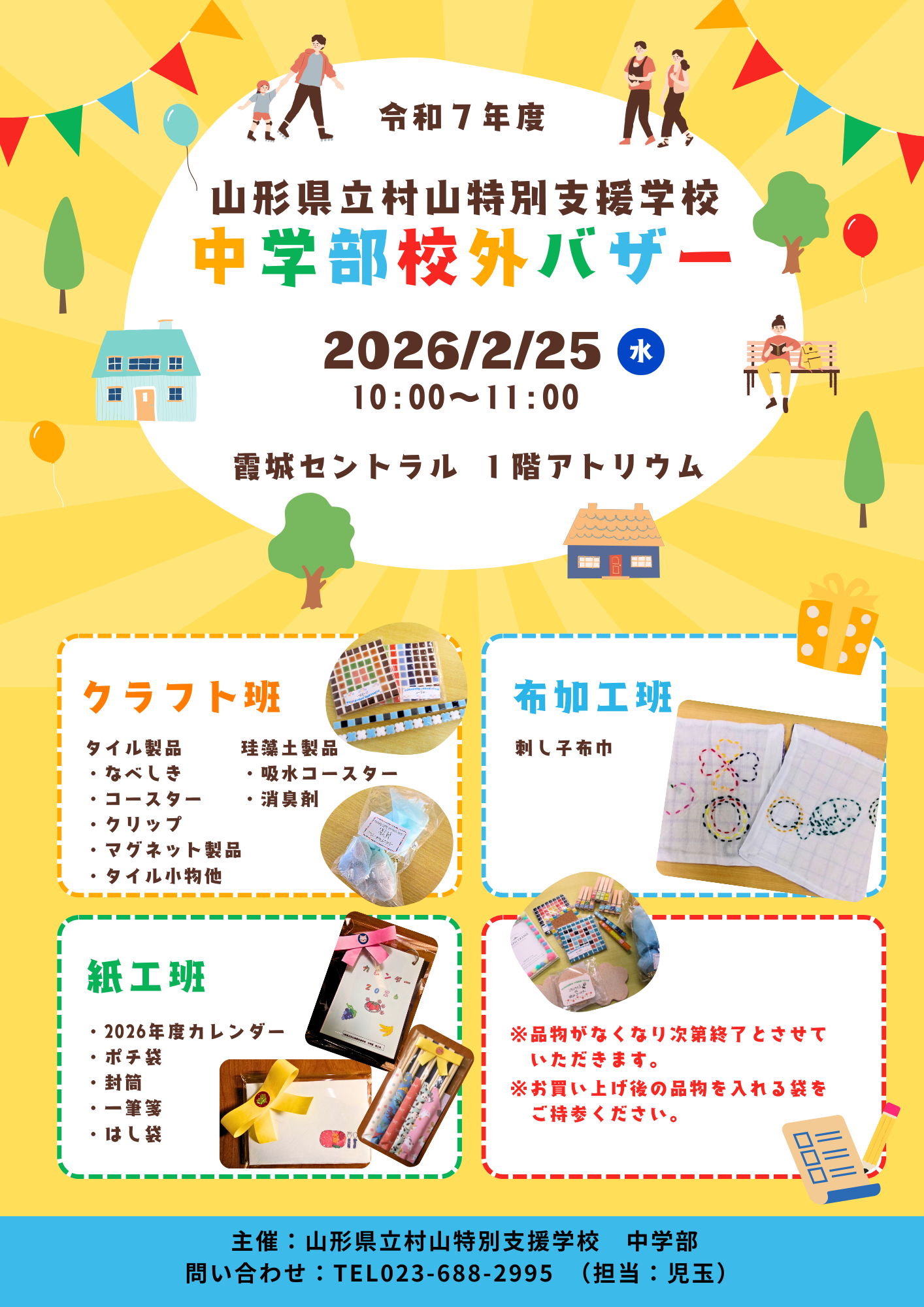 「中学部 校外バザー」が2月25日(水)に霞城セントラル1Fで開催されます。